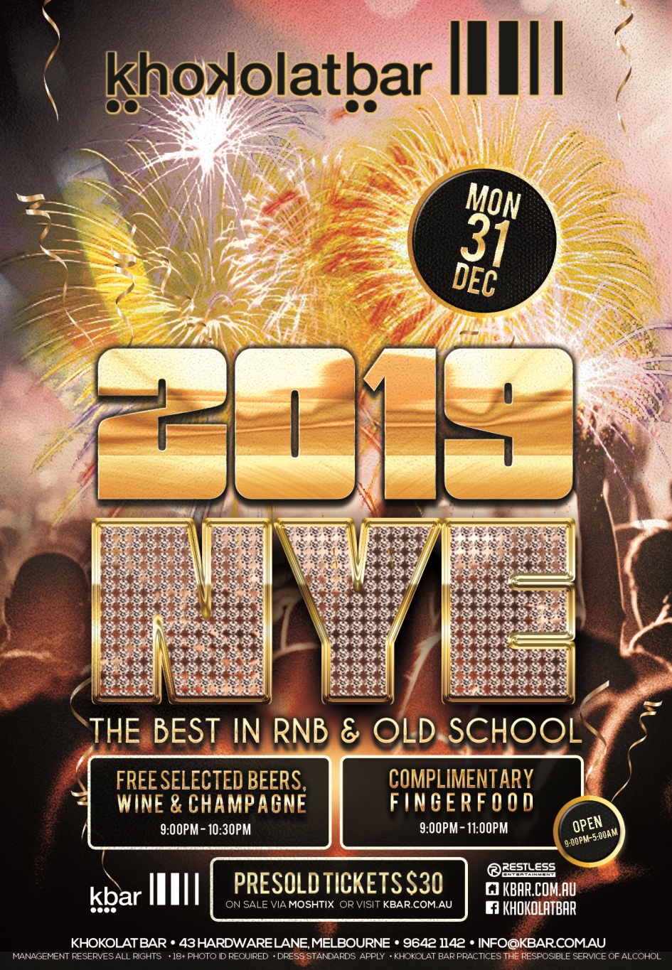 2019 New Years Eve Party! Free selected beers, wine & champagne | Complimentary Fingerfood PRESOLD TICKETS $30 Available through MOSHTIX BUY TICKETS